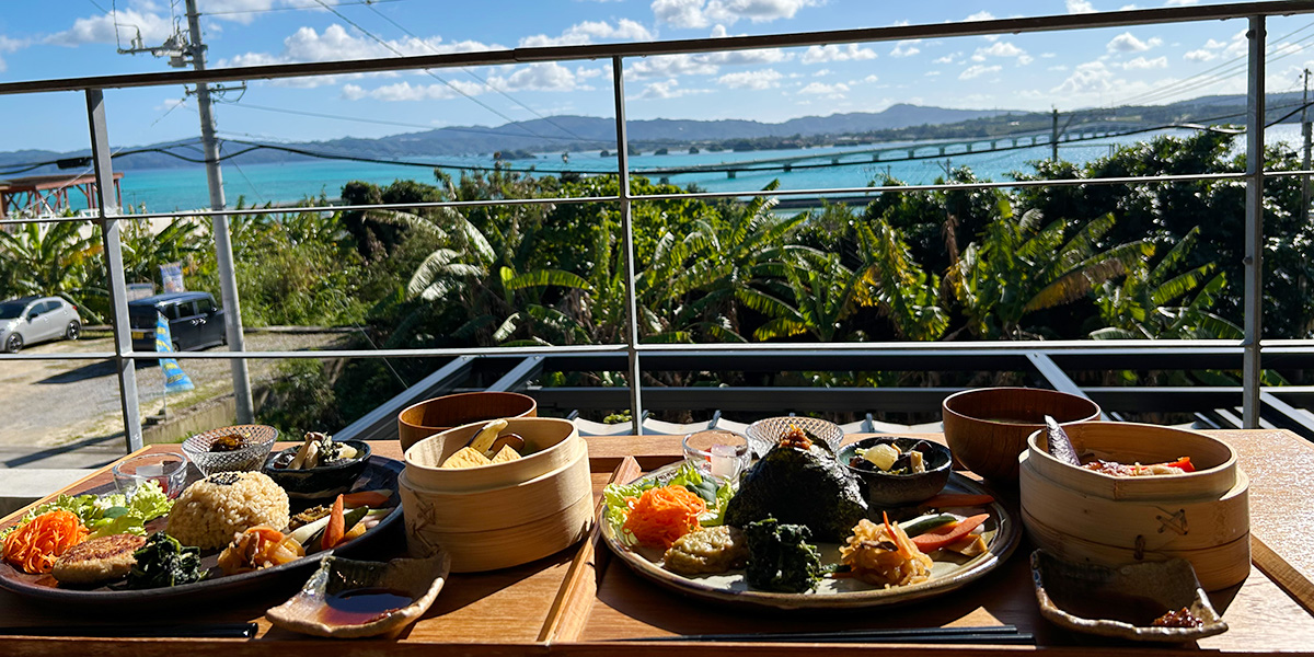 古宇利大橋を眺めながらお食事をお楽しみいただけるパノラマオーシャンビュー